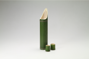 青竹とは切りたての新鮮な竹のことです。とっくりで使用するものは特に、若い竹で色味が鮮やかなものを選ぶことが重要です。それを、日本2人しかいない竹工芸技能士一級の代表の三島が見極め、その職人技で手作りで製作しています。