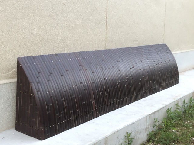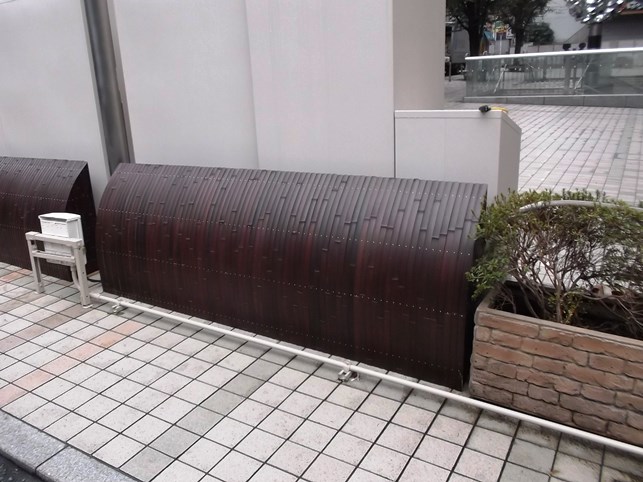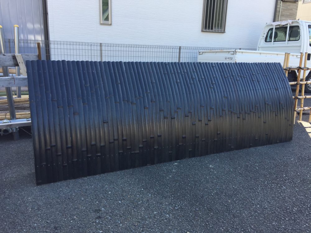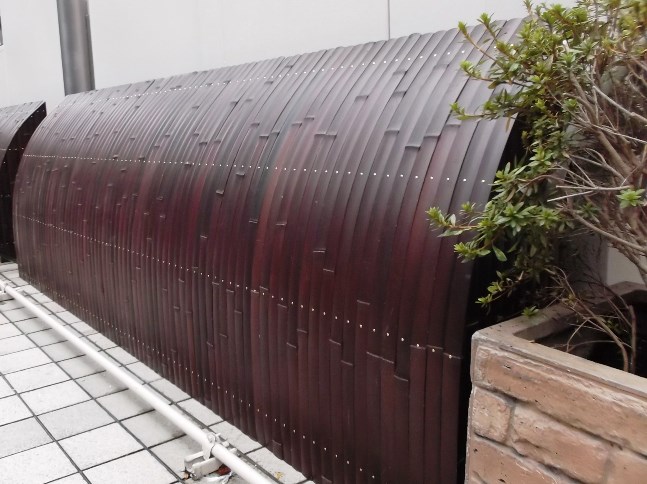 京都の町並みを彩る犬矢来(駒寄せ)には様々な色味があります。その一つに、晒竹に加工した竹を煤竹のように染め加工を施した染煤竹(そめすすだけ)があります。その染煤竹を使用した犬矢来(駒寄せ)は本煤竹と遜色のない色味を出し、軒下を豪華に演出します。青竹の犬矢来(駒寄せ)とは違った味のある一品です。