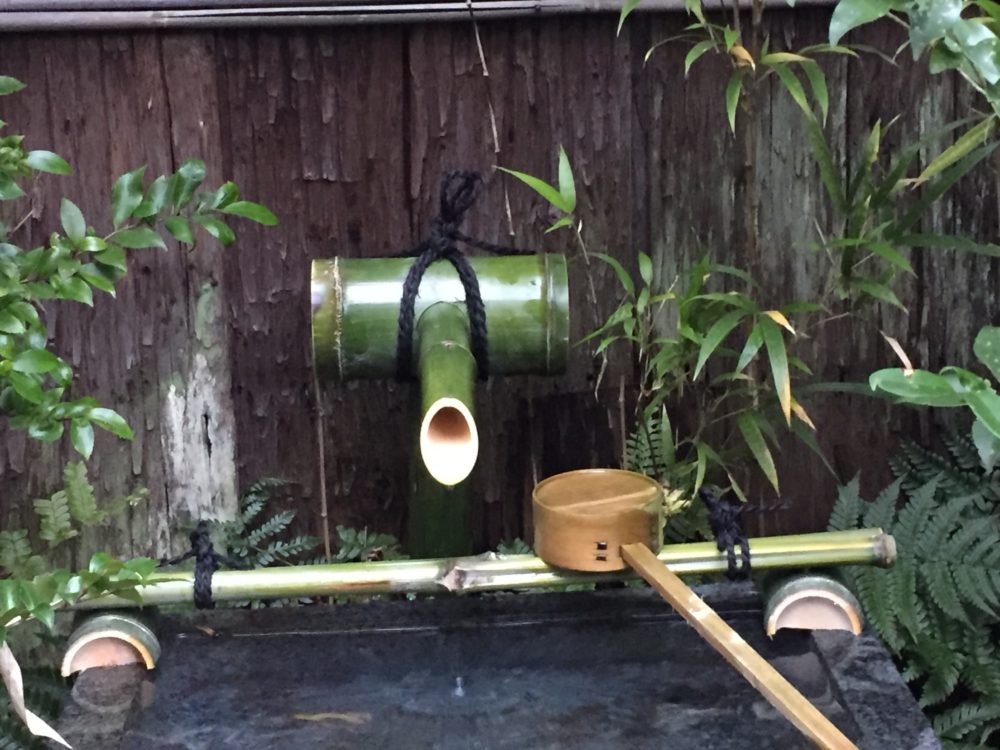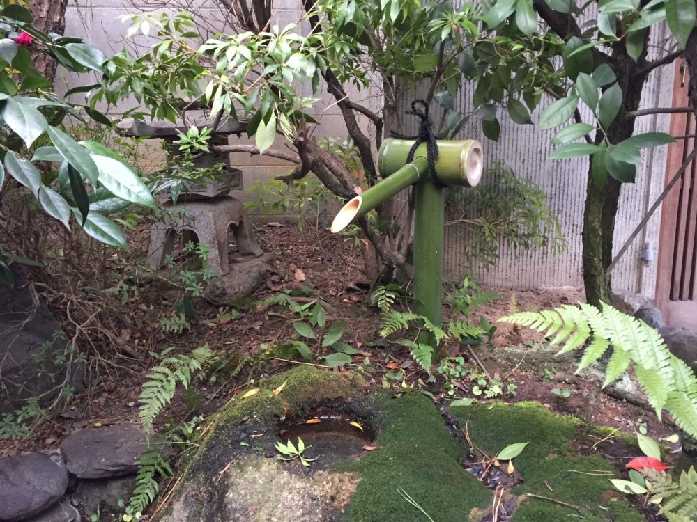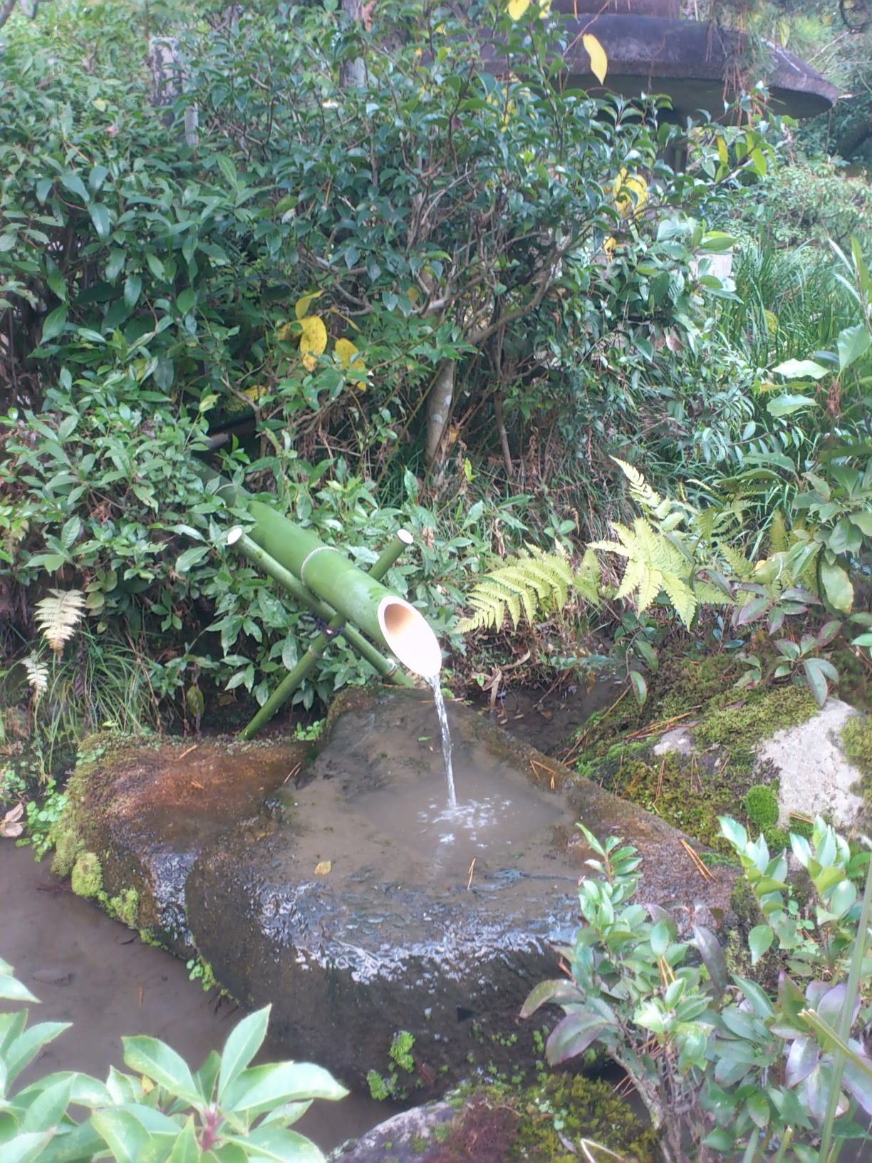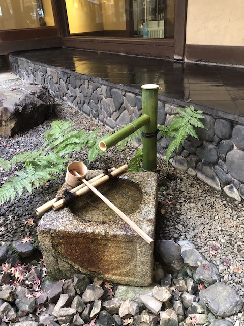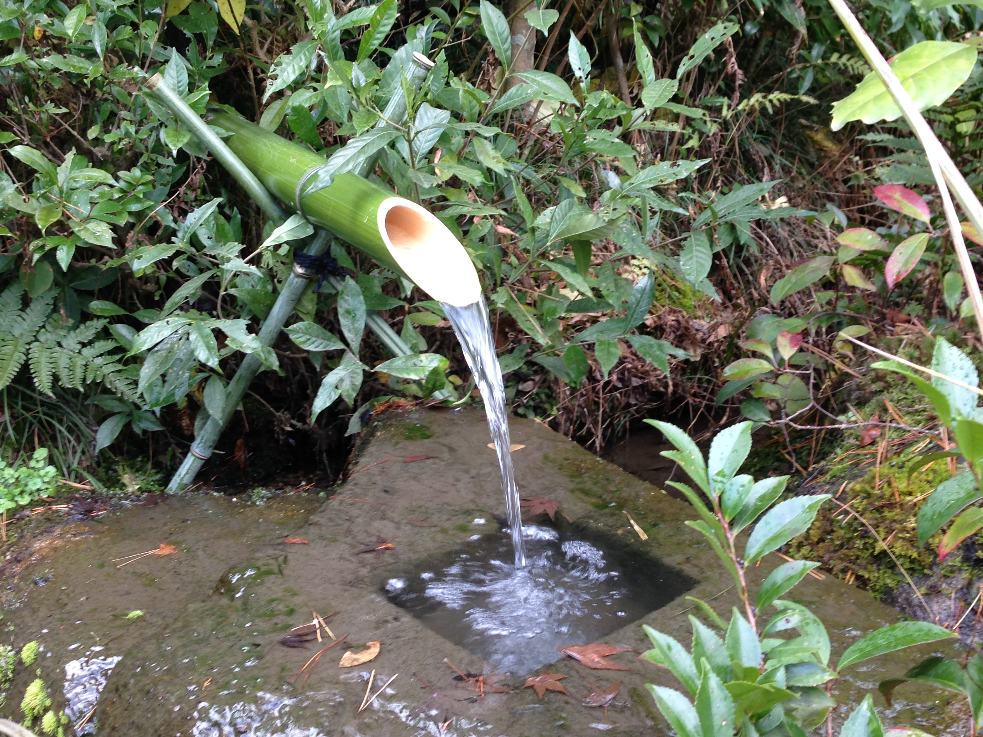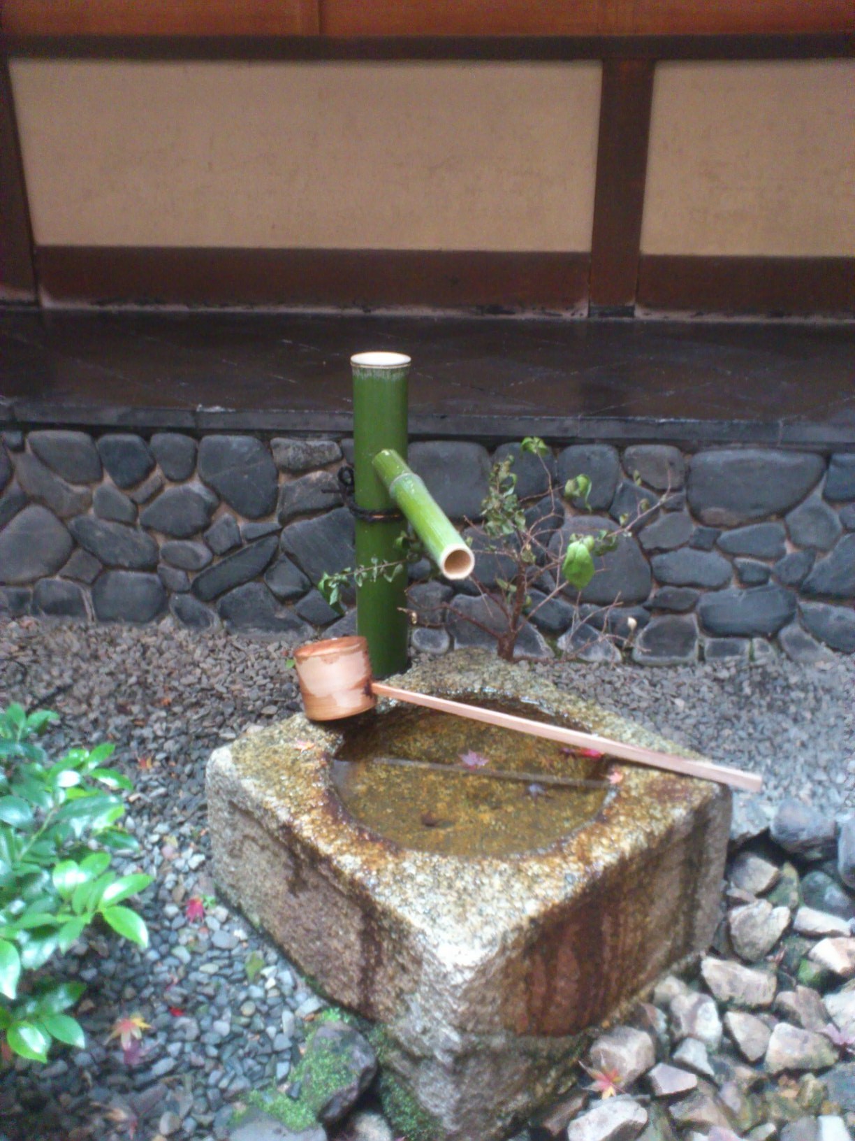 蹲(つくばい)の水口に設置し、杓や杓置きと共に蹲を飾り、お客様をお出迎えします。