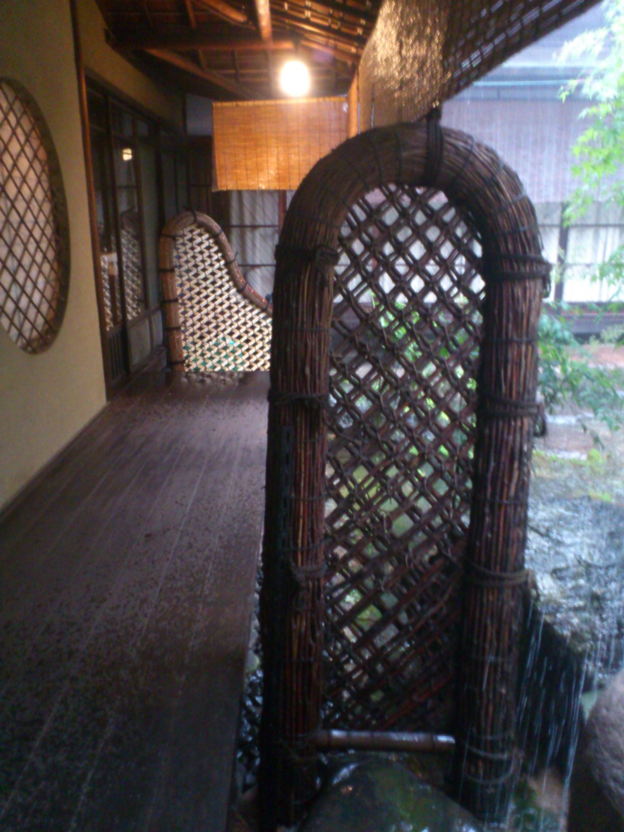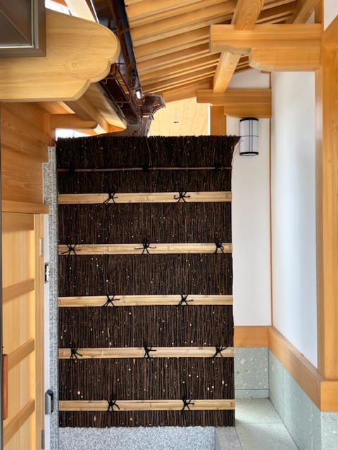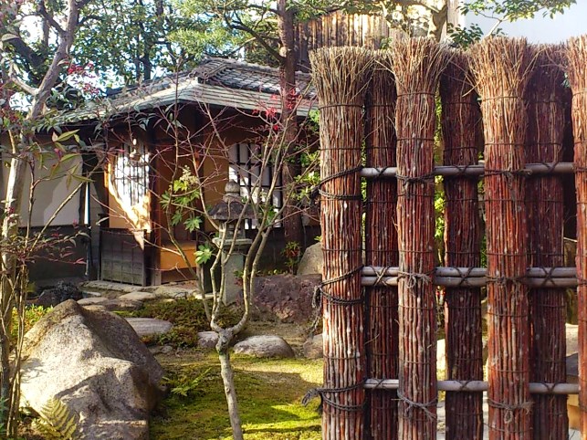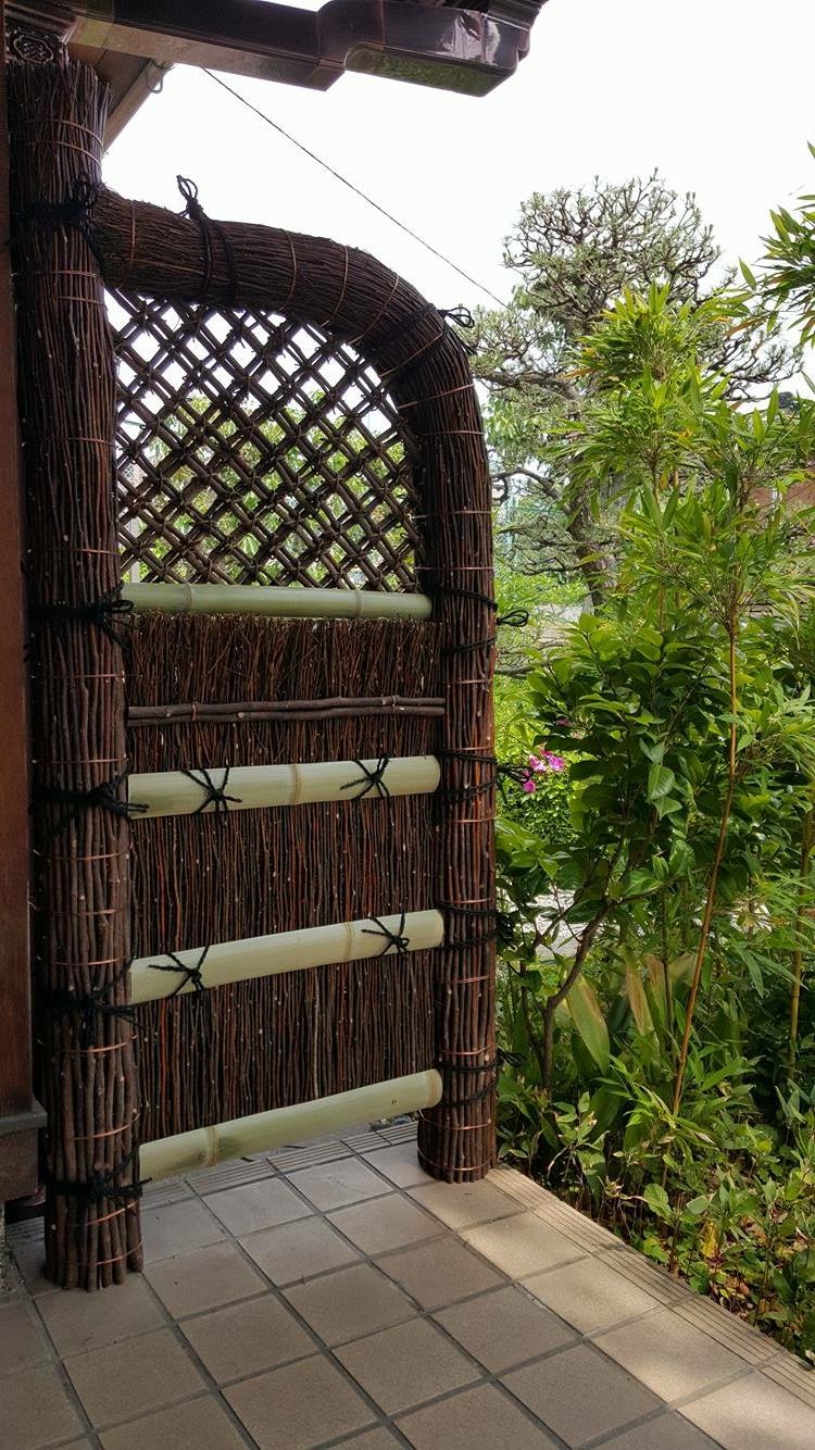 一般的に黒文字と言えば、薫り高い爪楊枝のイメージがありますが、竹垣でも黒文字を使用した垣があります。その黒文字を使用した竹垣は最高級品の一つでもあります。職人が黒文字の軸を一本一本枝打ちをして、丁寧に火であぶりながら真っすぐに伸ばして作る手間暇のかかった垣です。素材の持つ気品さと、職人の技が詰め込まれた垣は高貴な趣と力強さが表現され、庭のなかでも圧倒的な存在感を醸し出します。