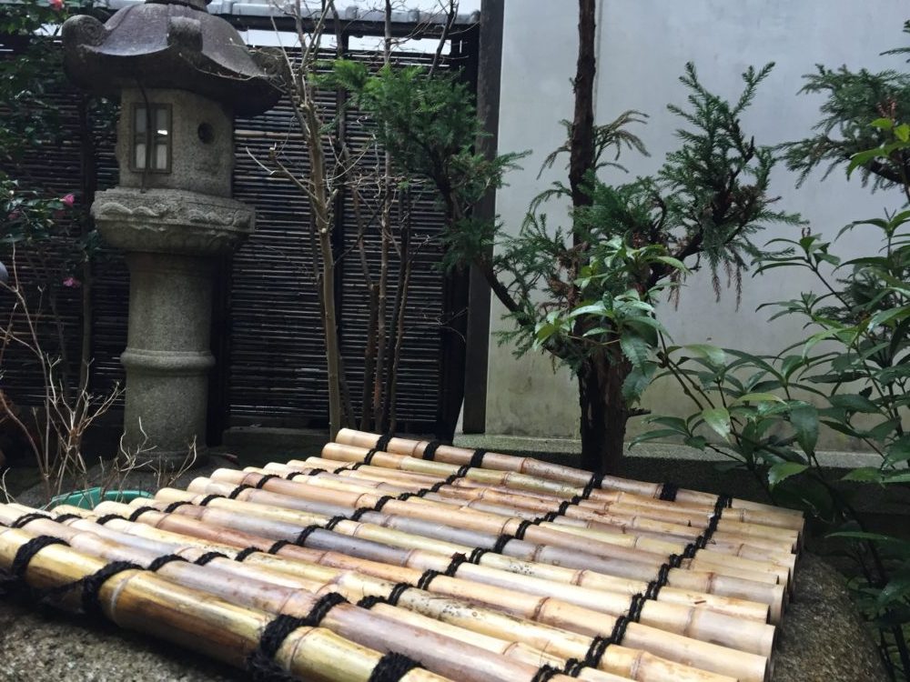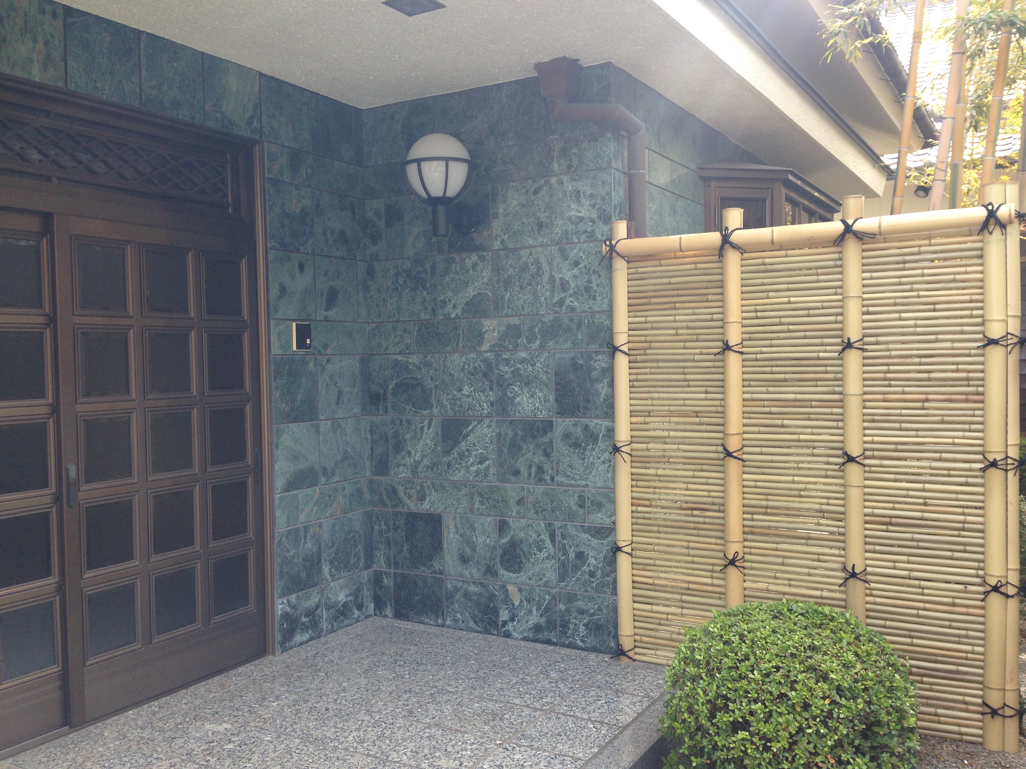 丸竹のまま使用するので、割り竹を使う竹垣より青味が長持ちします。