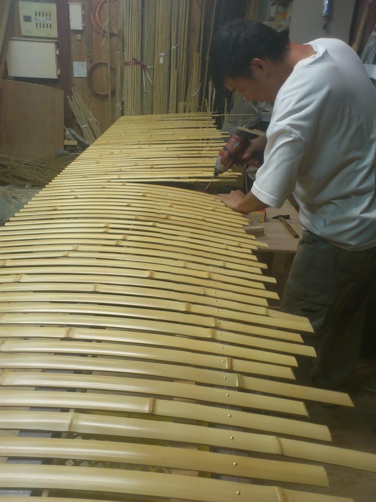 今回、製作中の駒寄せは、横方向に水勾配があり、少しナナメに作ってます。
