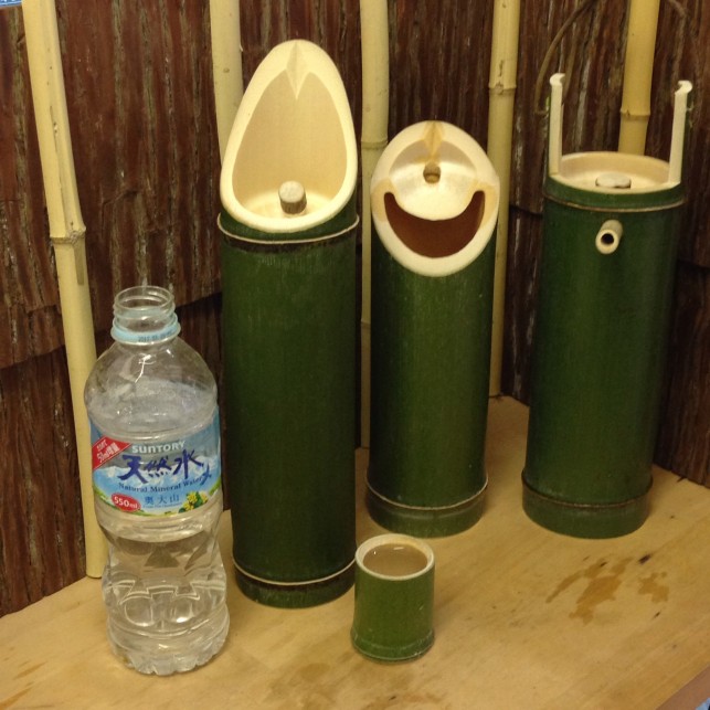 暑いところから、席に座るとまず目に入る青竹のおちょこ。 清々しい竹の色は、見た目に“涼”を感じます。