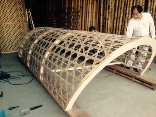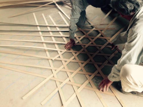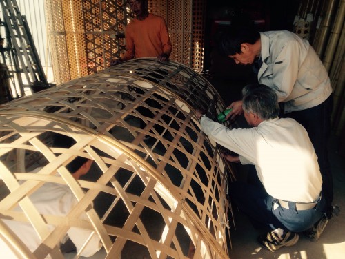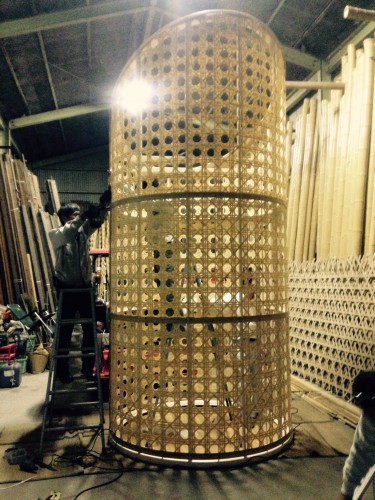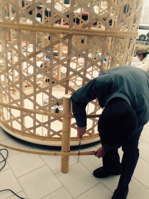 このバンブーイルミネーションには竹を編んだものが使われております。