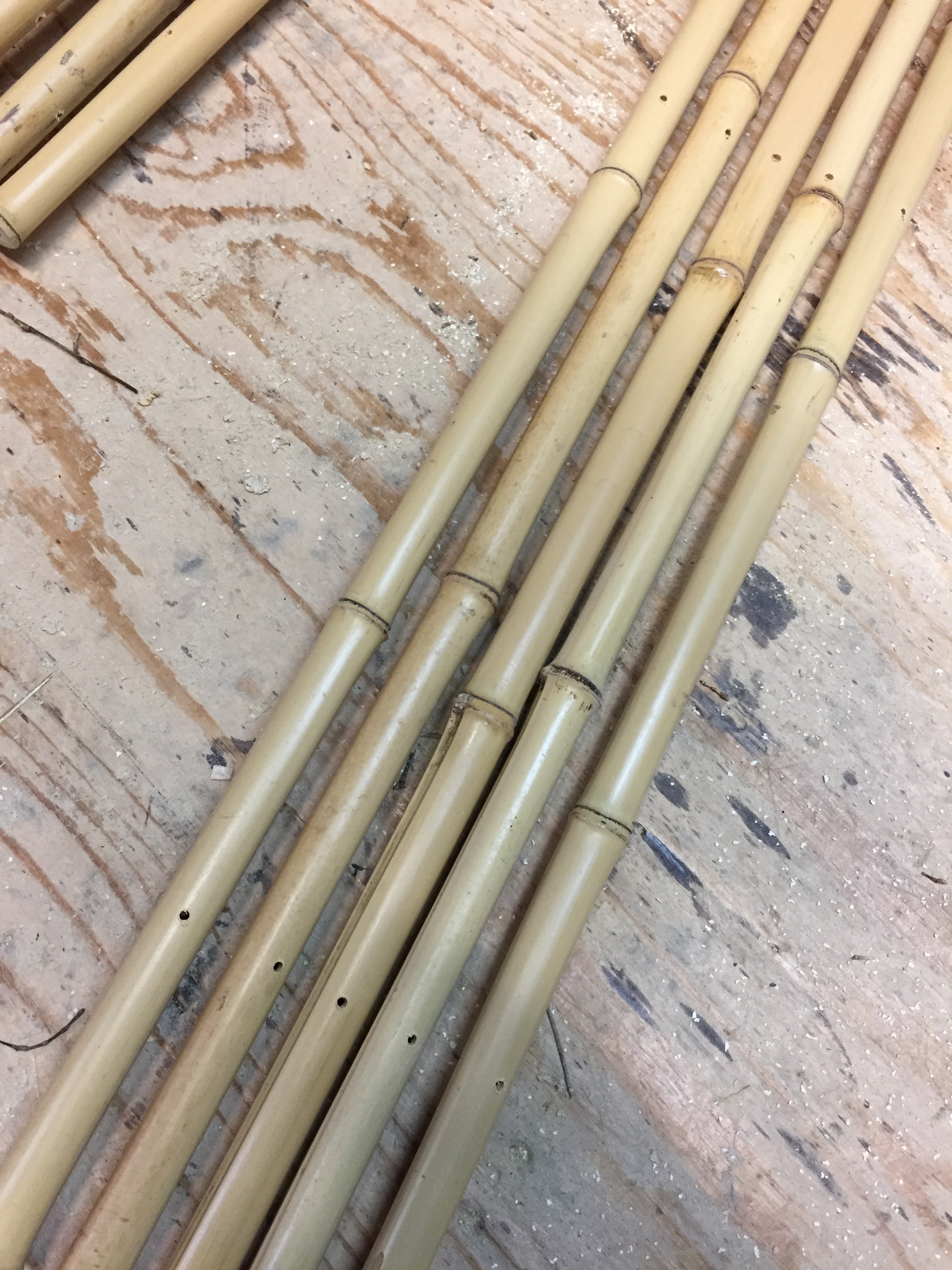 そして、すべての竹に穴が空いたら、銅線を通していきます。