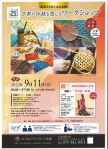 9月11日の土曜日、京都駅にございますホテルグランヴィア京都にて、伝統工芸のワークショップが開催されます。