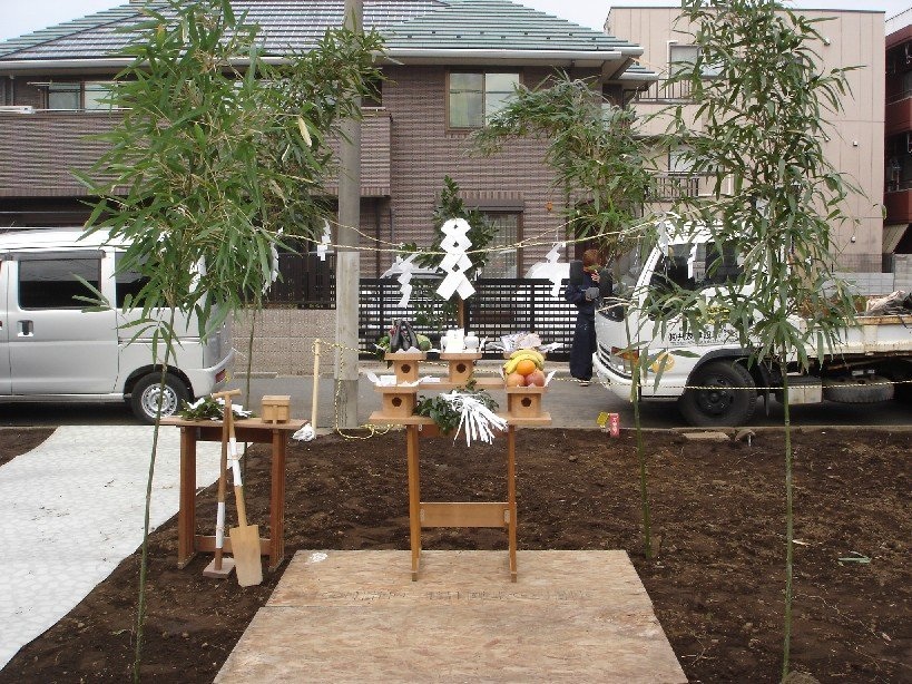 地鎮祭とは、土木工事や建築などで工事を始める前に行い、その土地の神(氏神)を鎮め、土地を利用させてもらうことの許しを得るための儀式です。