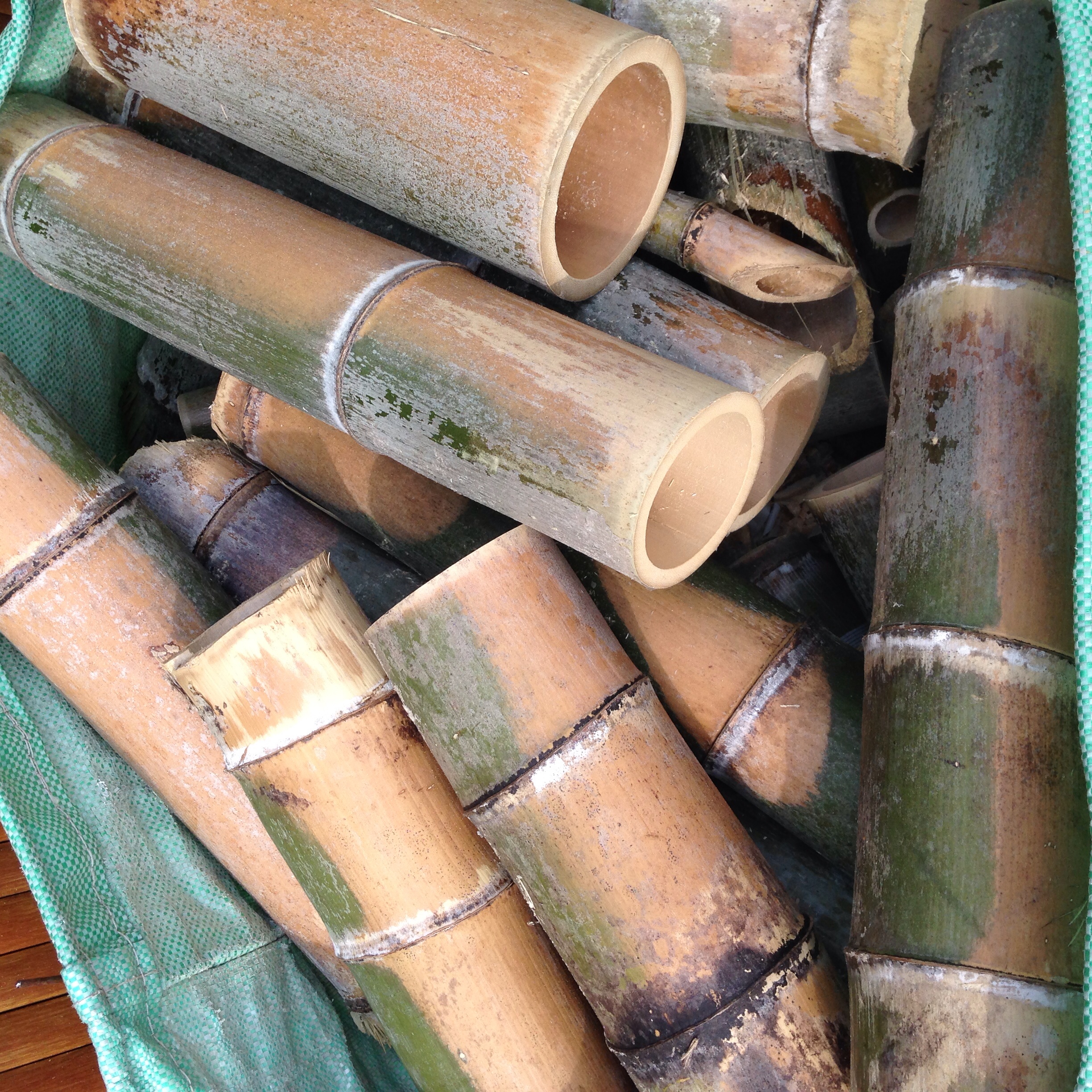 気温の高い今の季節は、青竹の色持ちも極端に短い上、陽射しに当てると焼けて使い物にならなくなりますので、青竹の管理にはとても気をつかう季節です。